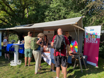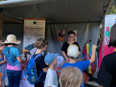 Das Fest bot ein vielfältiges Bühnenprogramm und zahlreiche Mitmachangebote für die ganze Familie. Bei den bbw Privatschulen waren wir natürlich auch vertreten. Unser Stand hatte für die Kinder spannende Bastelangebote parat, während die Eltern von unseren Beratungsangeboten profitierten. Doch der absolute Hit des Tages war unser buntes Glücksrad, das die Kinder in Scharen anzog. Hier wurden großzügig bunte bbw-Malkreide und coole bbw-Frisbees verlost.