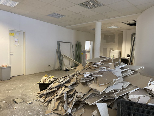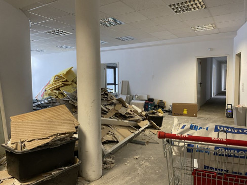 Vier Wochen nach Baubeginn haben wir unseren neuen Standort im TierparkCenter erneut besucht - und die Veränderungen sind deutlich sichtbar: Alle alten Innenwände wurden bereits entfernt, Teppichböden und Bodenbeläge herausgerissen und auch die Sanitäreinrichtungen werden aktuell rückgebaut.