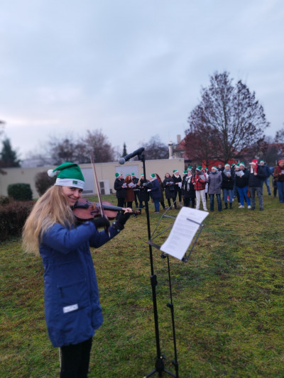 "Oh Tannenbaum" und "Fröhliche Weihnacht überall": So musikalisch starteten die Schüler:innen und Lehrkräfte der bbw Privaten Beruflichen Schulen am Mittwochnachmittag in ihre Weihnachtsferien. Sie hatten sich auf dem Schulgelände in Karlshorst in fröhlicher Runde zusammengefunden, um gemeinsam Weihnachtslieder zu singen. Begleitet wurden sie von ihrer neuen Musiklehrerin auf der Violine.