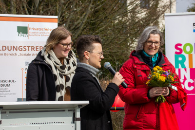 Aus diesem Anlass fand am 22. März 2023 eine Festveranstaltung auf dem bbw Schulgelände in Berlin-Karlshorst statt. In feierlichem Rahmen verlieh Lisa Wesemann von der Landeskoordination Berlin des Netzwerkes der Bildungseinrichtung den Titel "Schule ohne Rassismus - Schule mit Courage" und übergab Birgit Schulz in Anwesenheit von Birgit Monteiro, Vorständin der gemeinnützigen Kaspar Hauser Stiftung und Patin der neuen Courage-Schule, die Anerkennungsurkunde für die Mitgliedschaft und das Schild mit dem Logo-Schriftzug für das Schulgebäude.