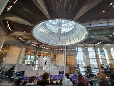 Eine Stunde lang verfolgten die Schülerinnen und Schüler die 146. Sitzung des Bundestages im Plenarsaal und erweiterten ihr Verständnis für politische Prozesse. Anschließend bestiegen sie die Kuppel des Reichstages und genossen einen atemberaubenden Blick auf die umliegenden Sehenswürdigkeiten, darunter das imposante Kanzleramt.