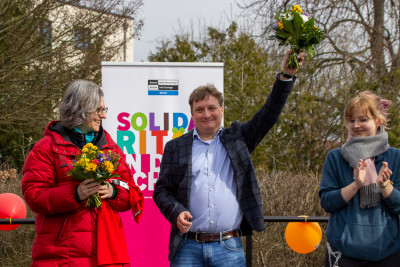 Lisa Wesemann, Birgit Monteiro, Birgit Schulz, (v. li.) und Mitglieder der Initiativgruppe